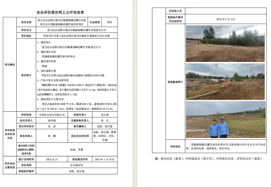 莫力達瓦達斡爾族自治旗嘉禧煙花爆竹有限 責(zé)任公司莫旗嘉禧煙花爆竹儲存庫項目