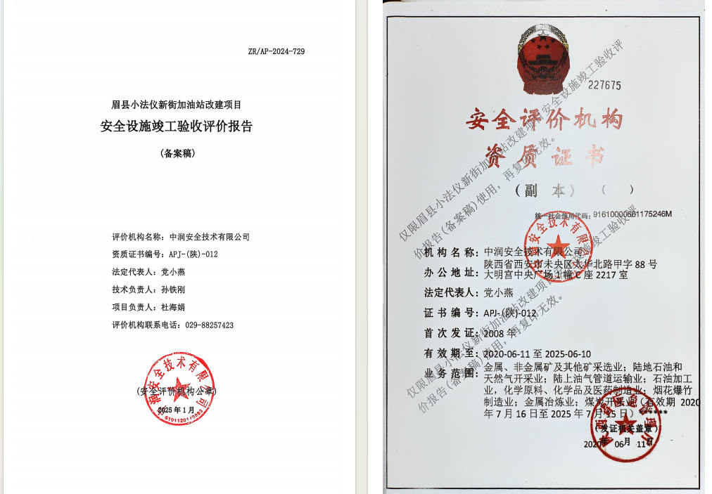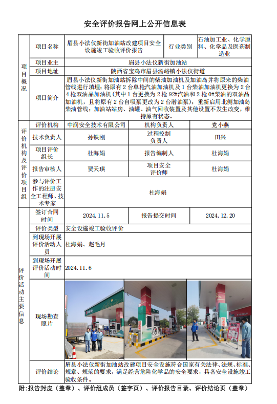 眉縣小法儀新街加油站改建項(xiàng)目安全設(shè)施竣工驗(yàn)收評價報(bào)告